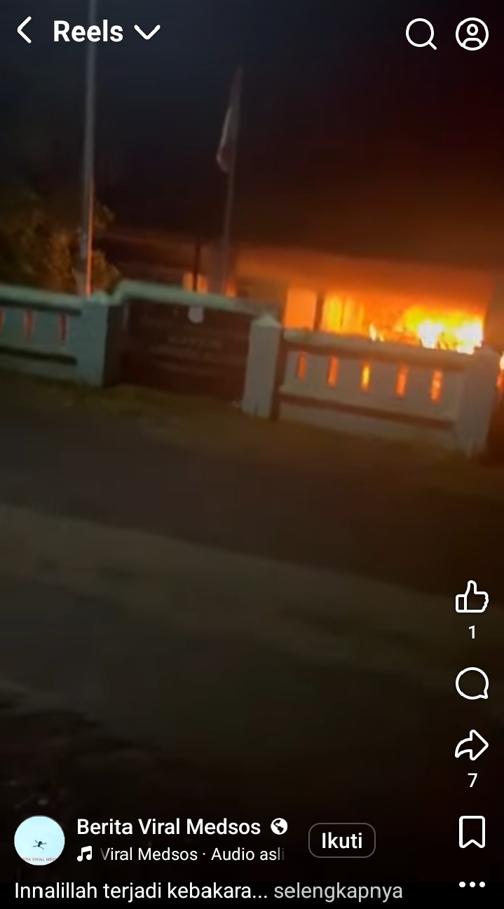 Dalam unggahan tersebut disebutkan, kobaran api membakar kantor desa Benteng Malewang.